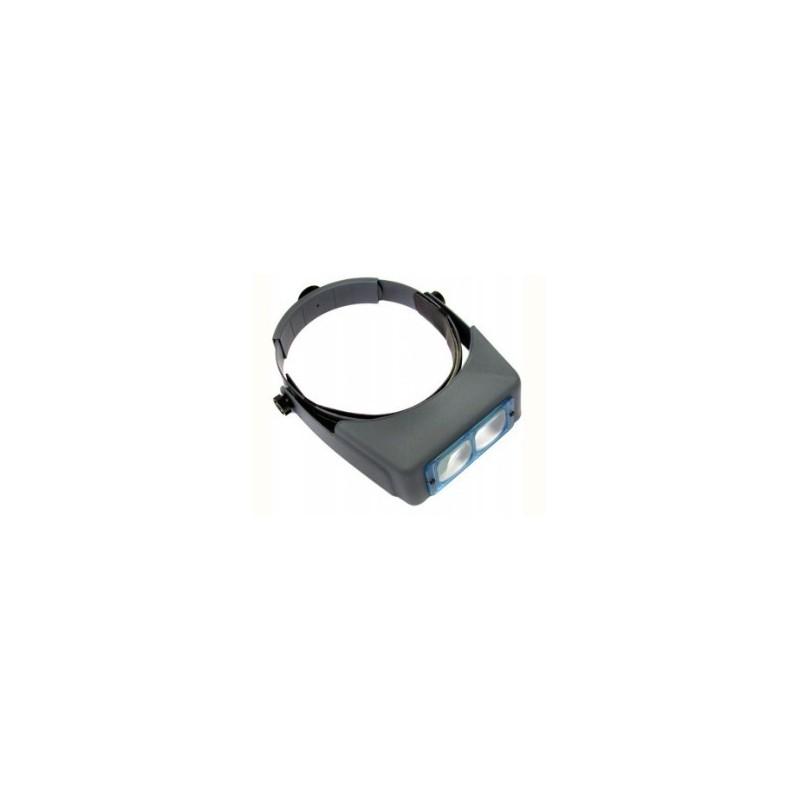 Loupe binoculaire Optivisor® sur serre-tête ergonomique à lentilles démontables et interchangeables. Le support est en synthétique gris, très léger et peu être relevé d'un simple geste pour repasser à la vision normale. La plaque oculaire de la binoculaire peut être changée.